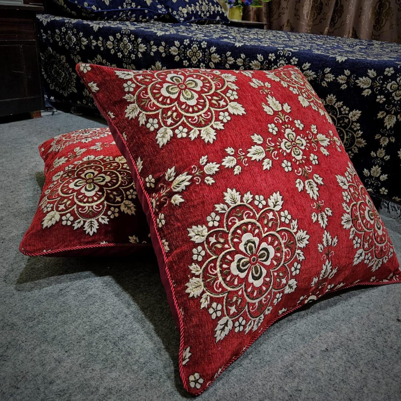 These velvet jacquard cushion covers offer a plush feel and graceful look — ideal for guest seating, baithak areas, and living rooms.